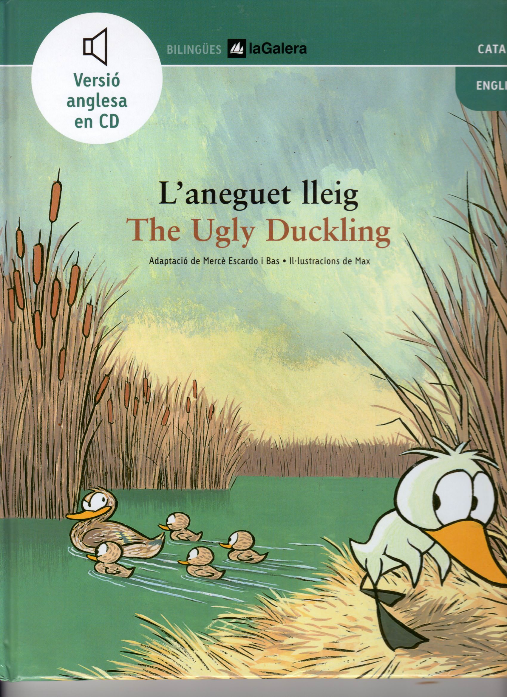L’Aneguet lleig/The ugly Duckling.Conte de Hans Christian Andersen adaptat per Mercè Escardó i Bas; Traducció a l’anglés de Andrew Stacey. Text bilingüe en català i anglés. i·lustrat per Max;CD amb la versió anglesa